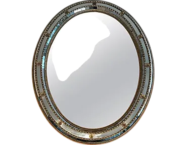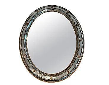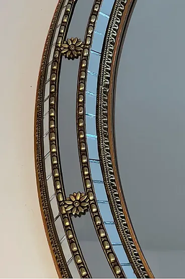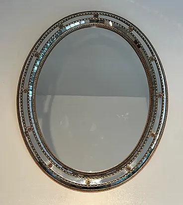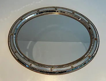 Specchio ovale multifacciale con ghirlande in ottone, anni '70