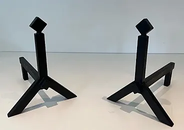 Coppia di Androni modernisti in ghisa e ferro battuto, anni '50
