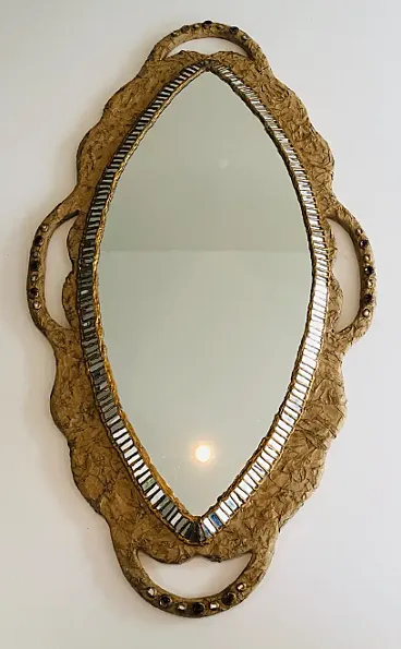 Specchio in cartapesta e intarsio di specchi di A. David, anni '70