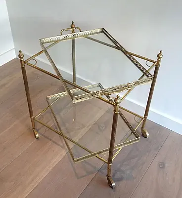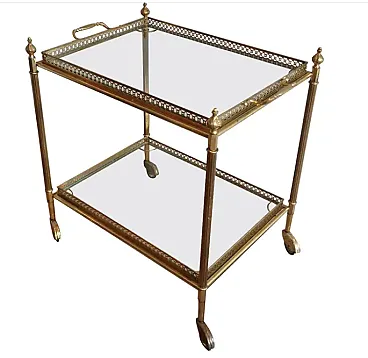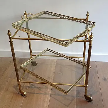 Carrello portabevande in ottone con vassoi rimovibili, anni '40