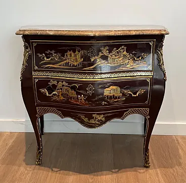 Commode laccata con scene cinesi stile Maison Jansen, anni '40