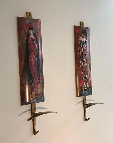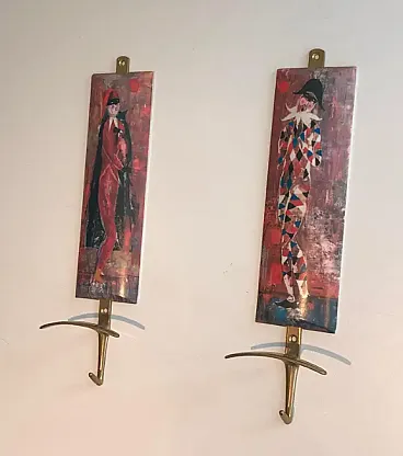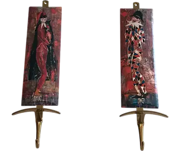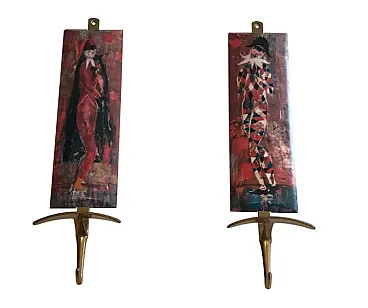 Coppia di appendiabiti in ottone e plastica, anni '70