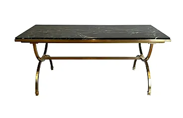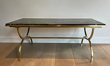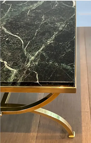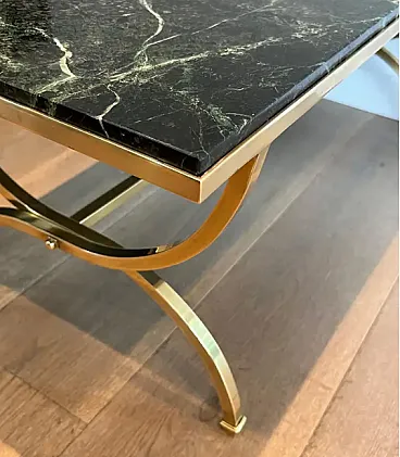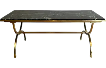 Tavolino in ottone con piano in marmo di Maison Jansen, anni '40