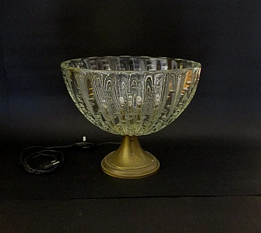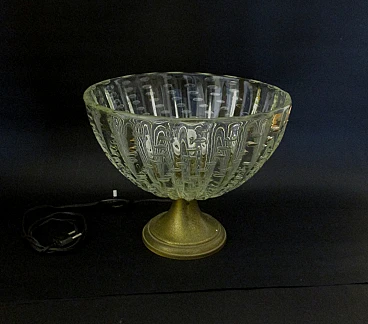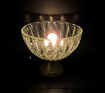 Meravigliosa ed elegante Lampada Ercole Barovier & Toso poca 1940 realizzata in vetro di murano bullicante soffiato a amano ottone ed avente base in ottone , monta porta lampade modello E27 in ottone con ghiera in porcellana , è munita di interruttore per accendere e spegnere la luce , molto bella e di notevole impatto scenografico grazie anche ai dettagli realizzati con accuratezza e raffinatezza , ideale come oggetto d'arredo , eventuali zone più chiare sono dovute al riflesso della luce artificiale , condizioni ottime usata perfettamente funzionante e come da foto. Dimensioni: altezza cm. 22 - larghezza cm. 26