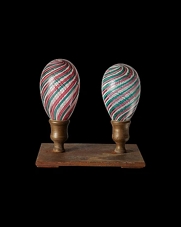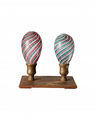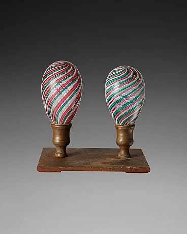 Tre coppie di uova Venini manifattura a canne montate in bronzo
