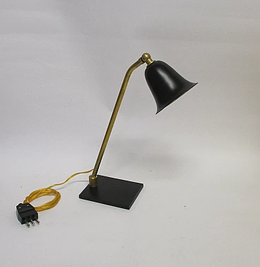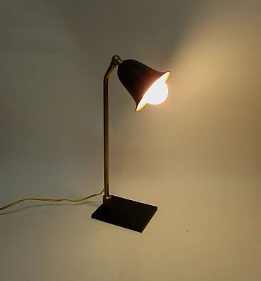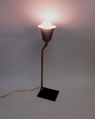 Splendida Lampada regolabile design attribuibile Arteluce epoca 1950 , realizzata in ottone avente paralume in alluminio , monta porta lampade modello E14 , la lampada e il paralume come da foto sono regolabili , molto bella grazie anche ai dettagli realizzati con accuratezza e raffinatezza , ideale come oggetto d'arredo , eventuali zone più chiare sono dovute al riflesso della luce artificiale , condizioni usata perfettamente funzionante e come da foto. Dimensioni: altezza cm. 32 - larghezza cm. 9 - lunghezza cm. 14