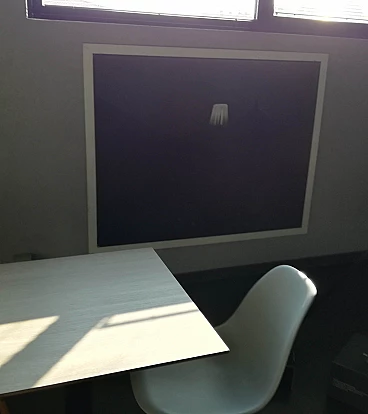 Pannello di grandi dimensioni con stampa di foto di Luigi Bussolati, anni 90, soggetto Lampada Rosy Angelis di Stark x Flos. Stampa su forex 4 mm. Fa parte di un gruppo di 8 fotografie sul design.