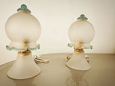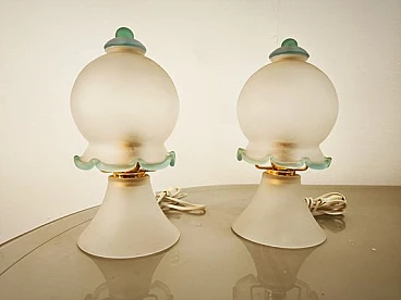 Coppia di lampade da tavolo in vetro di Murano satinato, anni '80
