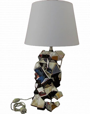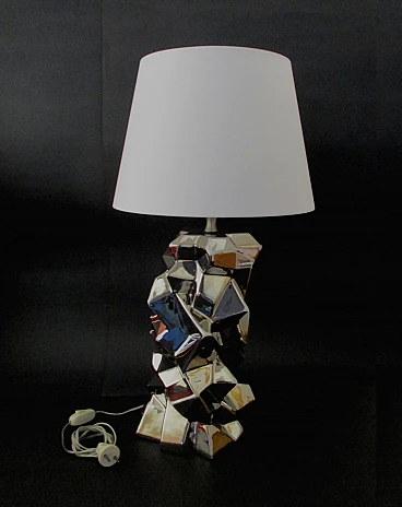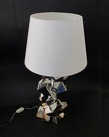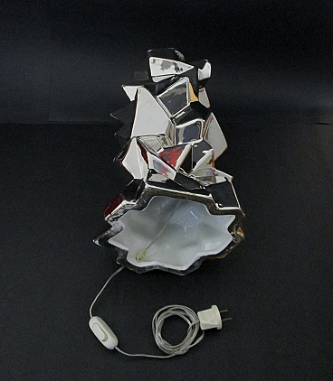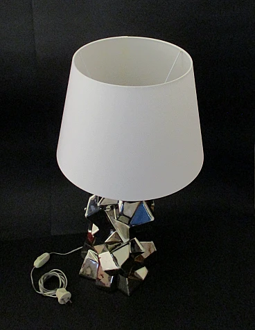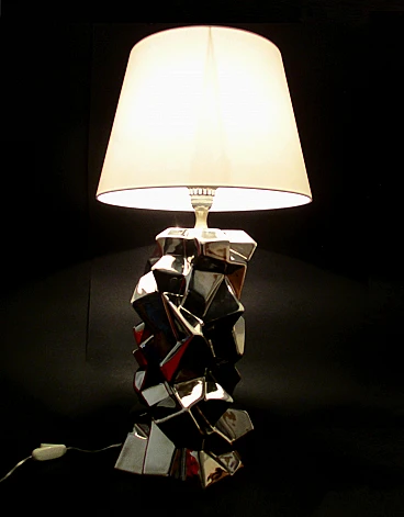 Meravigliosa ed elegante grande Lampada geometrica Opera Artistica firmata Ugo Zaccagnini dell'epoca 1960 realizzata in ceramica e firmata all'interno , un opera splendida che grazie alla sua forma e al suo color cromo ne esalta la bellezza il carattere e la sua unicità , completamente lavorata e rifinita a mano , monta porta lampada E27 , è munita di interruttore per accendere e spegnere la luce , il paralume è recente ed ha struttura in metallo con rivestimento in tessuto ed stato sostituito in quanto il paralume d'epoca era usurato , molto bella e di notevole impatto scenografico grazie anche ai dettagli realizzati con accuratezza e raffinatezza , ideale come oggetto d'arredo , eventuali zone più chiare sono dovute al riflesso della luce artificiale , presenta qualche segno d'usura dovuto all'epoca e al tempo passato , condizioni usata funzionante e come da foto. Dimensioni con paralume: altezza cm. 67 - larghezza cm. 34 / Dimensioni senza paralume: altezza cm. 46 - larghezza cm. 23