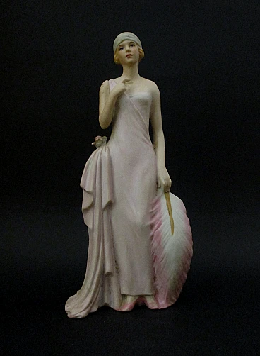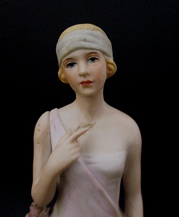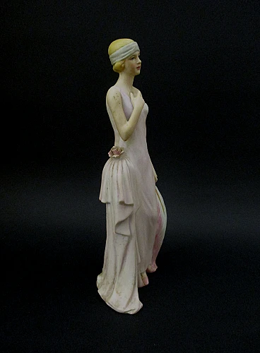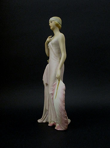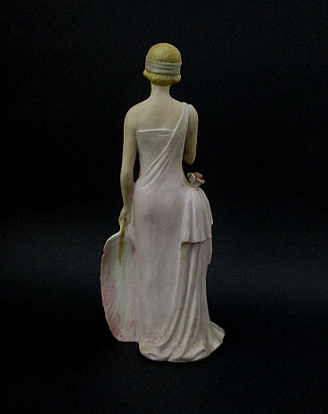 Splendida elegante Statuina dama Liberty epoca 900 abilmente realizzata in biscuit e finemente dipinta a mano , molto bella e di notevole impatto scenografico grazie anche ai dettagli realizzati con accuratezza e raffinatezza dai maestri ceramisti dell'epoca , la statuina è firmata Capodimonte ed è facente parte di una serie di quattro statuine , eventuali zone più chiare sono dovute al riflesso della luce artificiale , condizioni ottime come da foto. Dimensioni: altezza cm. 23 - larghezza cm. 10
