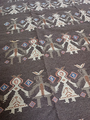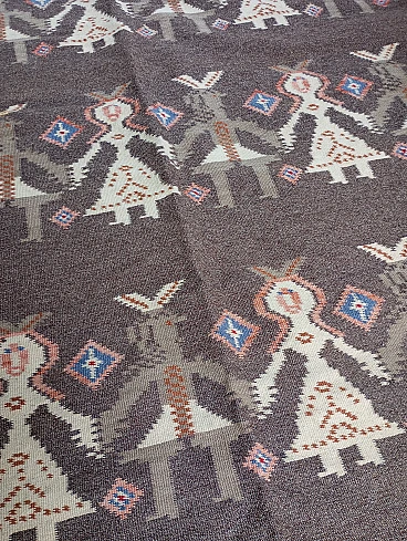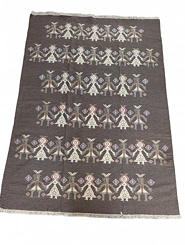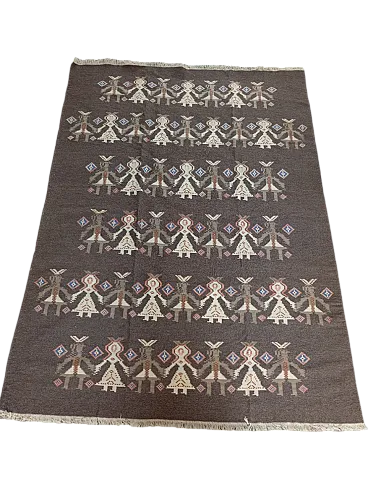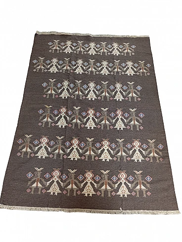 Tappeto kilim scandinavo marrone Finlandia, anni' 70