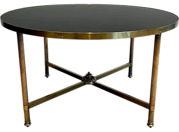 Tavolino in ottone con piano in vetro di Maison Jansen, anni '40
