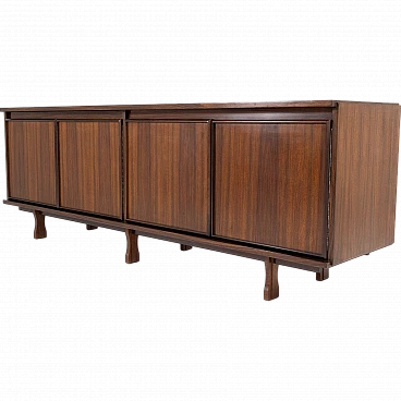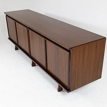 Questa credenza, chiamata Caleno, è stata progettata da Giovanni Ausenda & Marco Fontana e prodotta da Stilwood. È realizzata in legno di palissandro, caratterizzato da una finitura calda e venature eleganti. La credenza ha una struttura lunga e bassa, con un design sobrio e raffinato. Misura 214 cm in lunghezza, 53 cm in profondità e 74 cm in altezza. Le ante 4 frontali offrono uno spazio di archiviazione ampio e funzionale, sostenuto da un basamento con piedini leggermente sagomati, che le conferiscono una sensazione di leggerezza visiva.