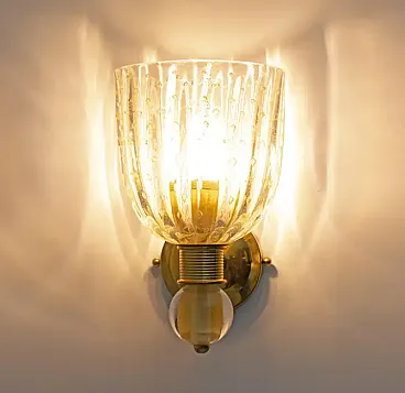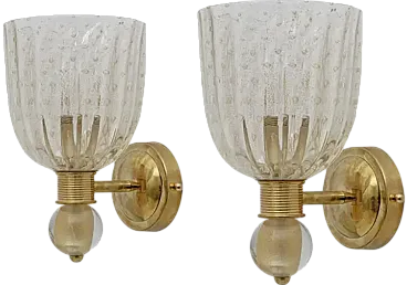 Coppia di lampade in ottone e vetro di Murano Pulegoso, anni '90