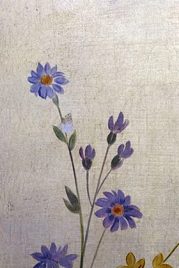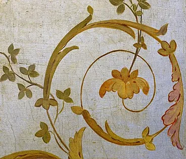 Elegante e splendida grottesca ad olio su tela dipinta su foglia d'oro zecchino 12k. Nel XVII e XVIII secolo il grottesco comprende un ampio campo di sperimentazione artistica. Il mostruoso, ad esempio, si presenta spesso come nozione di gioco. La sportività della categoria del grottesco si ritrova nella nozione di categoria preternaturale del lusus naturae, negli scritti di storia naturale e nei gabinetti di curiosità. L'ornamento grottesco ricevette un ulteriore impulso dalle nuove scoperte di affreschi e stucchi originali romani a Pompei e negli altri siti sepolti intorno al Vesuvio a partire dalla metà del secolo. Continuò ad essere utilizzato, diventando sempre più pesante, nello Stile Impero e poi nel periodo vittoriano, quando i disegni divennero spesso fitti come nelle incisioni del XVI secolo, e l'eleganza e la fantasia dello stile tendevano a perdersi. In questo splendido dipinto a olio la tradizione del grottesco è seguita con meticolosa precisione e dedizione su una tela dorata a foglia d'argento. Dimensioni del dipinto cm.55x51
