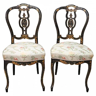 Coppia di sedie antiche Luigi Filippo ebanizzate e decori dorati, '800