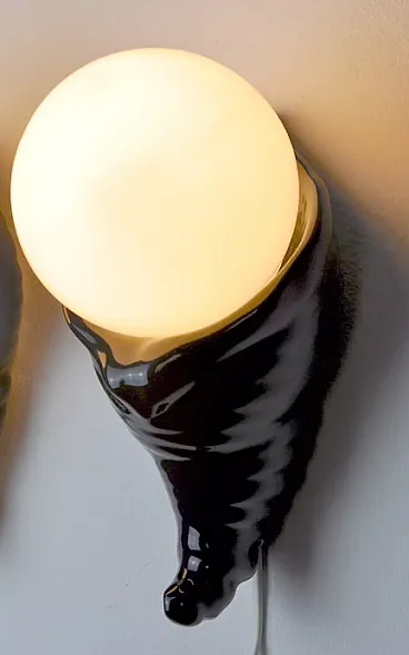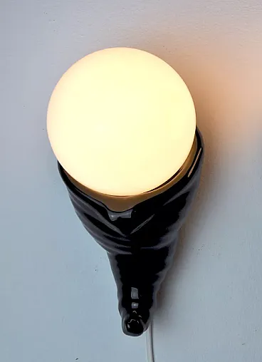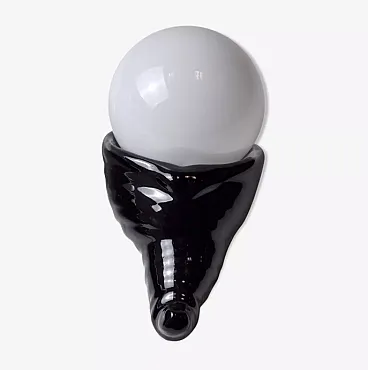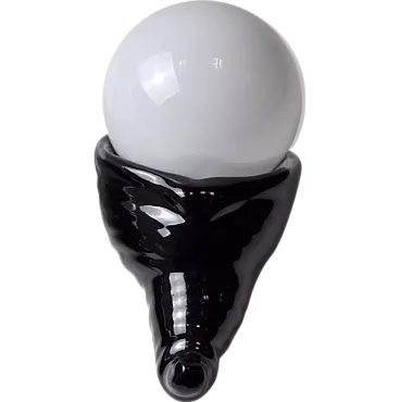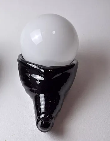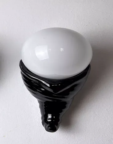 Applique a chiocciola in ceramica nera e vetro opalino, anni '80