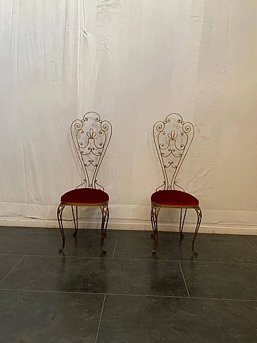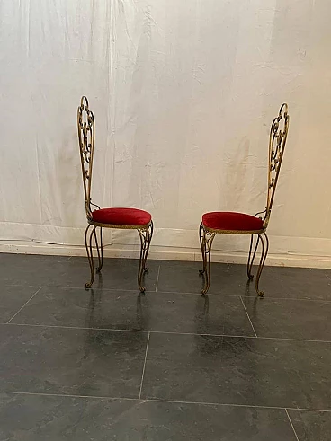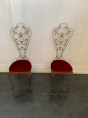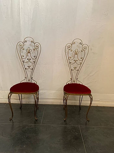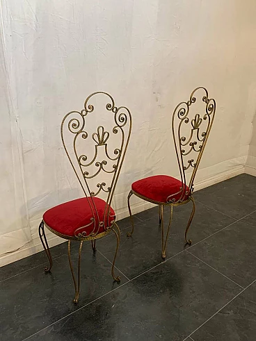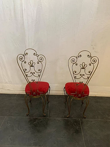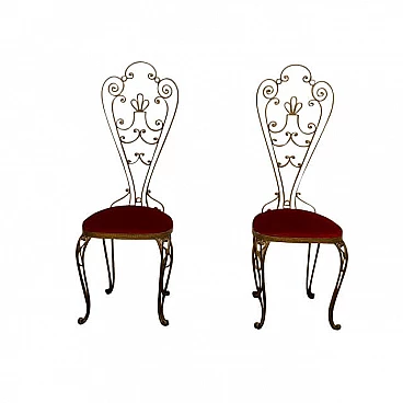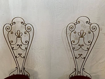 Coppia di sedie in ferro battuto con schienale alto, anni '50