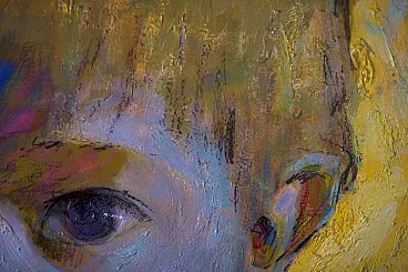 La pittura di Renato Criscuolo, artista partenopeo ed indiscusso maestro di arte contemporanea, è idea, sensazione, sentimento. Criscuolo modella il colore ed al contempo modella la nostra emozione attraverso il gioco poliedrico dei sensi creando intermediazioni che muovono dalla percezione visiva per sconfinare poi in altri ambiti sensoriali solo all’apparenza meno tangibili eppure avvincenti e rapinosi. Dinanzi ad un quadro di Criscuolo il nostro guardare si amplifica fino ad avvertire profumi, suoni, silenzi, gusti, smarrimenti dell’anima, moti gioiosi, intermittenze emotive, nostalgiche e talvolta indomabili, che rivelano l’intimità sovrana del pittore e la padronanza viscerale della tela. Il dipinto misura cm. 100 X 100 è possibile richiedere cornice di diverso modello e colore