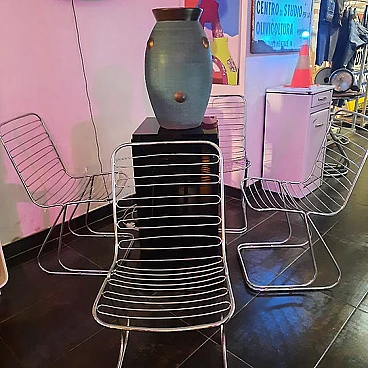 4 sedie in acciaio e pelle nello stile di Gastone Rinaldi, anni '70