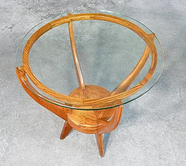 Tavolino da fumo in legno e vetro, anni '50