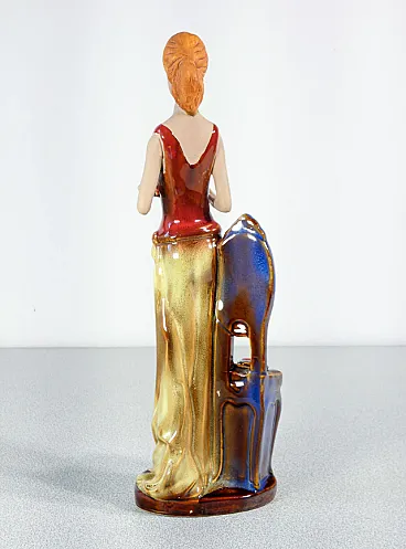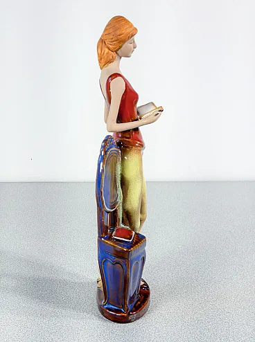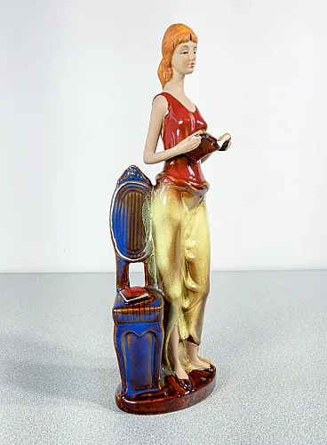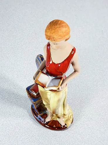 Donna con libri in ceramica dipinta e smaltata, metà '900