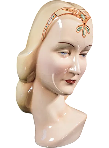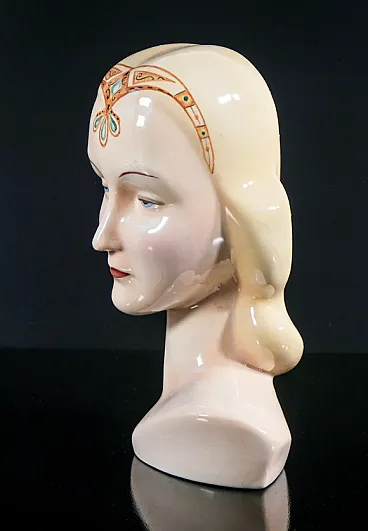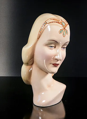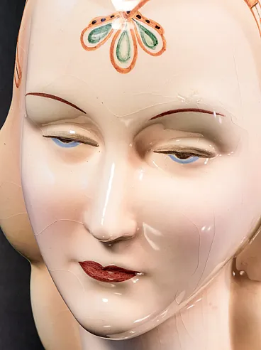 Donna con diadema, acultura in ceramica dipinta a mano, anni '40