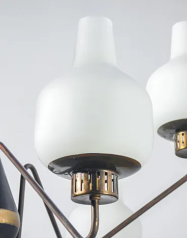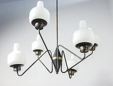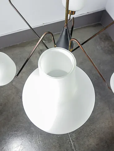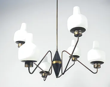 Lampada a sospensione in ottone, metallo e vetro di Stilnovo, anni '50