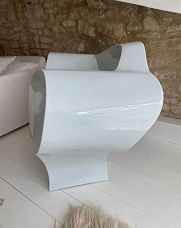 BELLISSIMA POLTRONA. Poltrona The Big Easy disegnata dal grande guru internazionale del design Ron Arad e prodotta da Moroso. E' realizzato in polietilene bianco lucido, ed è una versione laccata disegnata nel 1991. OTTIME CONDIZIONI. Tenuta in maniera maniacale come puro oggetto di collezionismo. Leggerissimi segnaposti di normale uso, minuscoli. polrna tenuta molto bene. Un'opera d'arte contemporanea. Firmata in basso alla base, come in foto. Una poltrona oseremmo dire spettacolare. Misure L133xP88xH 94 cm Altezza seduta 42 cm Polietilene Tinto Bianco Gesso Ral 9003 laccato lucido (Cod.161).