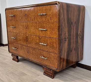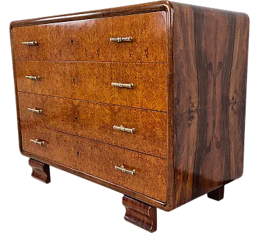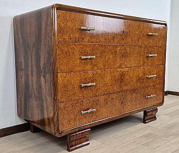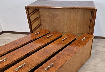 Raro comò Art Dèco Veneziano " incorniciato " in Radica di Noce continua con frontale dei cassetti in Radica di Tuia.