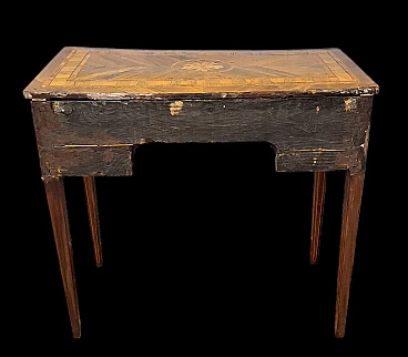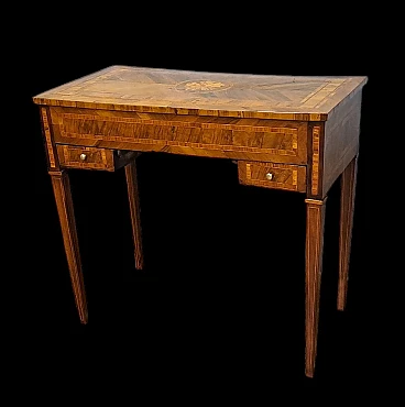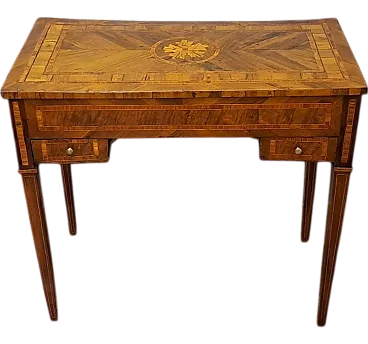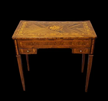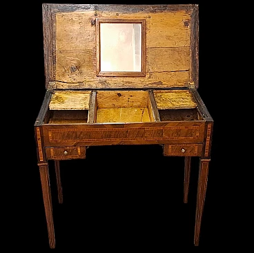 Piccola toilette con funzione di scrittoio interamente lastronata in legno di noce.