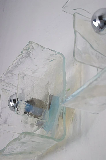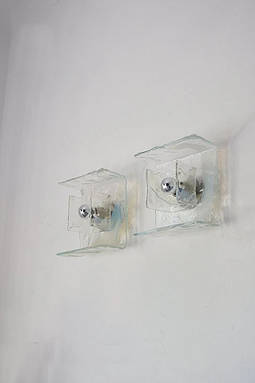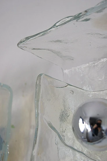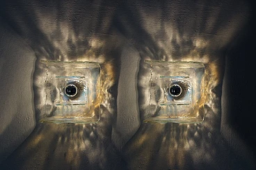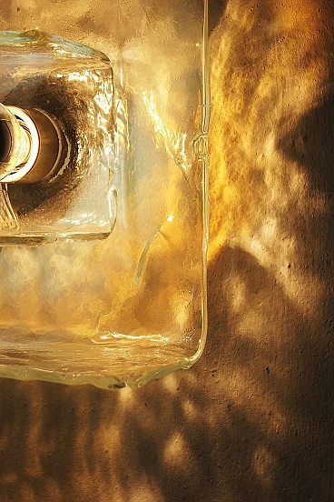 La lampada da parete è un apparecchio di illuminazione elegante e di grande effetto che aggiunge lusso a qualsiasi spazio. Realizzata a mano con un'eccezionale attenzione ai dettagli, questa lampada da parete ha un paralume in vetro di Murano graziosamente curvato. L'intero pezzo è sostenuto da un'elegante struttura in metallo, che crea un contrasto visivamente sorprendente. La luce diventa un elemento geometrico essenziale. Il vetro parzialmente colorato offre un meraviglioso effetto di illuminazione e splendidi riflessi sulla parete. L'intero pezzo è conservato nelle sue condizioni originali.