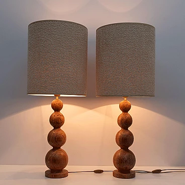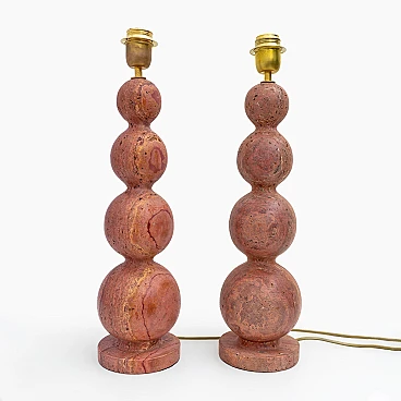 Coppia di lampade a sfera in travertino rosso, anni '90