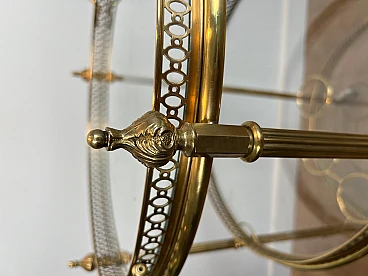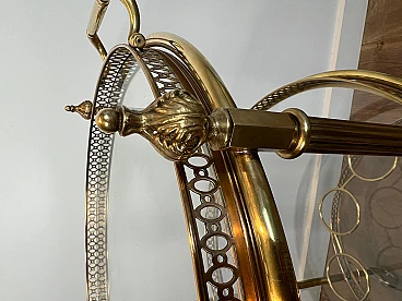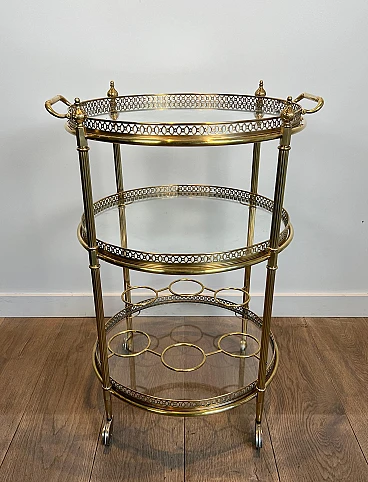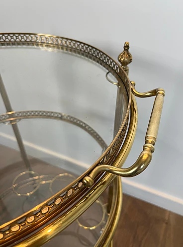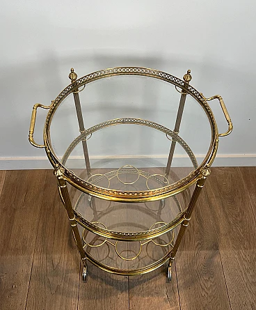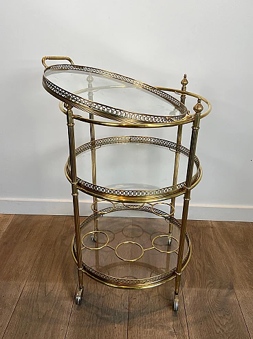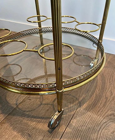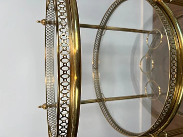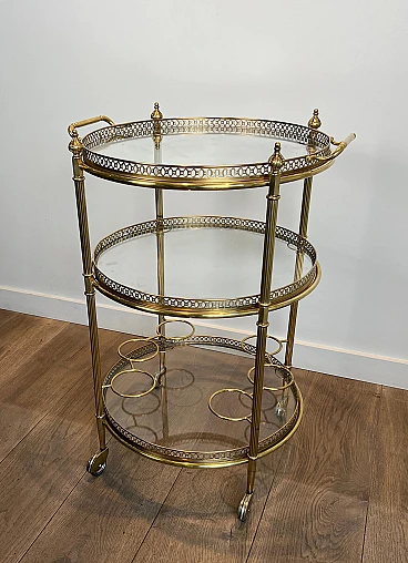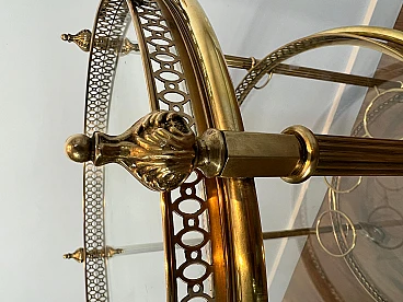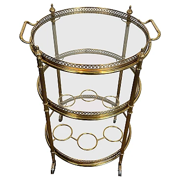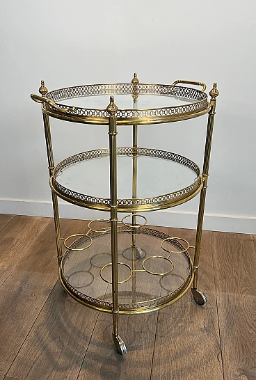 Carrello da bar rotondo in ottone a tre piani, anni '40