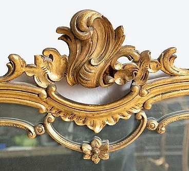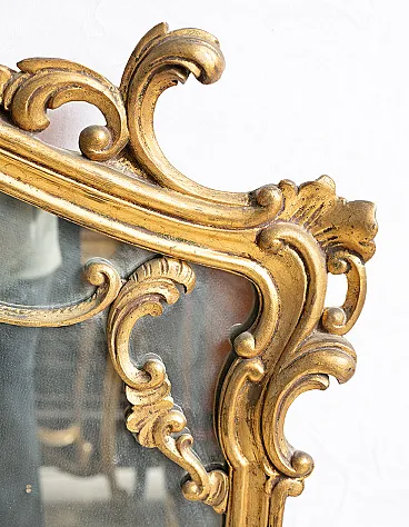Descrizione: Lo specchio coevo è inglobato all'interno di una cornice avente una forma a racemi alternata a motivi floreali