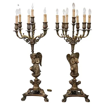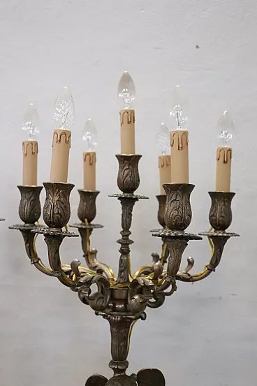 Coppia di grandi candelabri in bronzo elettrificati, '800