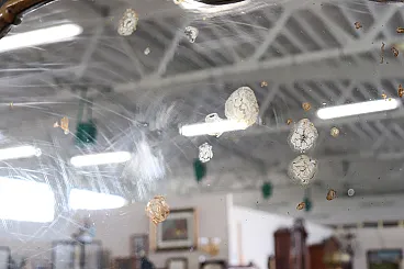 Specchio da muro con cornice in legno dipinta a fondo verde, '900