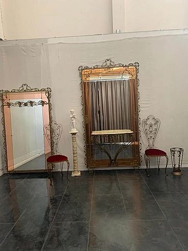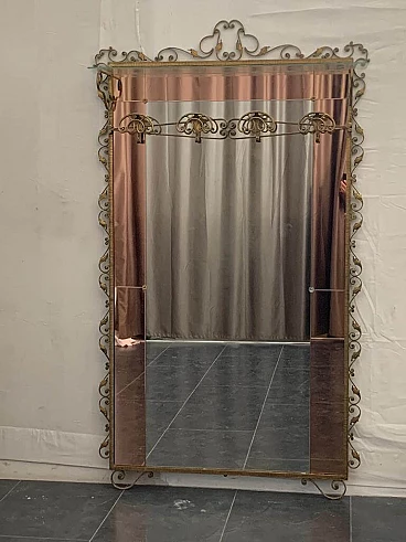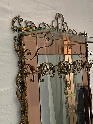 Appendiabiti con specchio e mensola in vetro e ferro battuto di Pierluigi Colli, anni '50