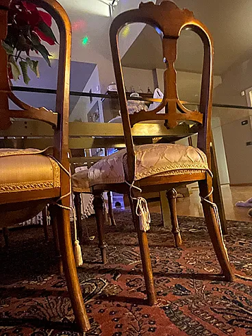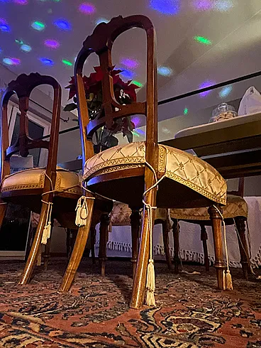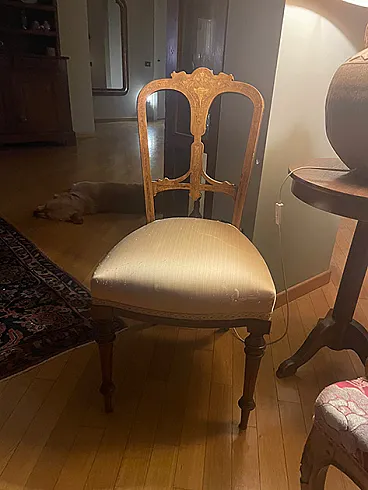 6 sedie Liberty in legno massello intarsiato, primi '900