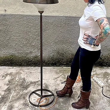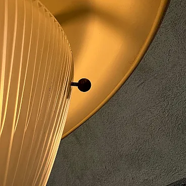 La lampada Talia, disegnata dallo Studio BBPR per Artemide negli anni '60, è un'icona del design italiano che combina eleganza e funzionalità. Caratterizzata da linee essenziali e un'estetica minimalista, è stata progettata per integrarsi perfettamente in qualsiasi ambiente, sia moderno che classico. La struttura in metallo riflette lo stile industriale dell'epoca, mentre il diffusore crea un'illuminazione diffusa e confortevole, ideale per creare un'atmosfera accogliente. La lampada è stata aggiornata per garantire un utilizzo sicuro e moderno, grazie alla sostituzione del cavo elettrico con uno nuovo e più efficiente. Tuttavia, è stato mantenuto l'interruttore a pedale originale, un dettaglio che conserva il fascino autentico del design vintage, permettendo di accendere e spegnere la lampada con un semplice tocco del piede.