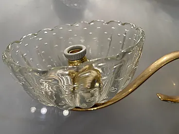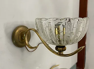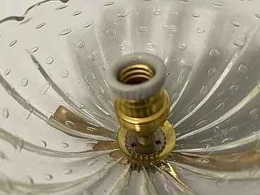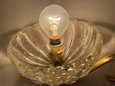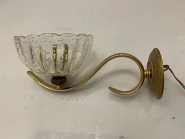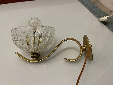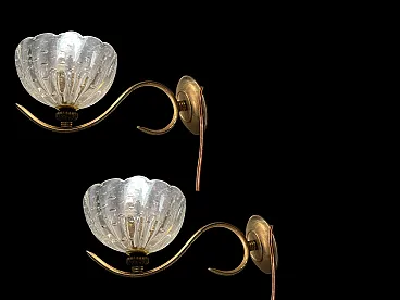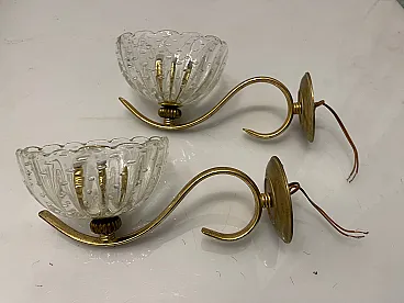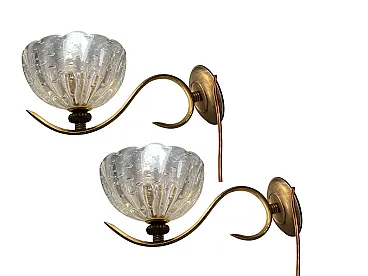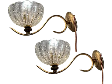 Additional Item Information - Brass Murano glass sconces Set of 2 Puleguso Mouth blown glass Pulegoso glass, which appears full of bubbles, is made by injecting into the molten glass a component that reacts and in doing so releases gas bubbles. This technique was invented in the 1920s by Napoleone Martinuzzi at the Venini glassworks. Brass frames New wiring Height 12 cm Width 14 cm Depth 25 cm Features 1 light Requires E14 light bulbs New wiring installed compatible with EU UK USA