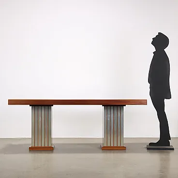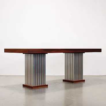 Tavolo in mogano impiallacciato e alluminio, fine '900