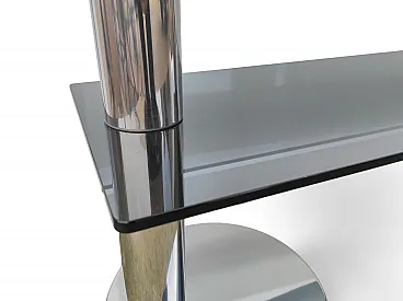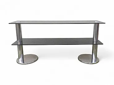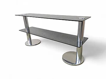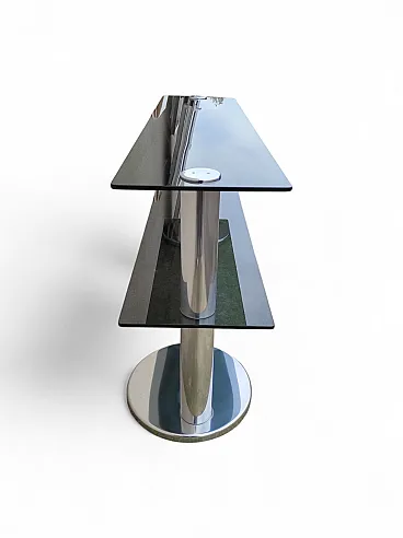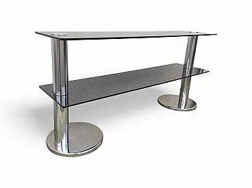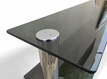 Consolle in vetro fumè, acciaio e placcatura in cromo, anni '70