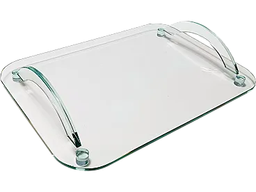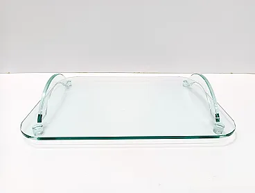 Vassoio in vetro trasparente nello stile di Fontana Arte, anni '80