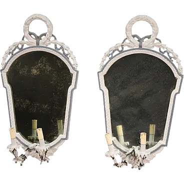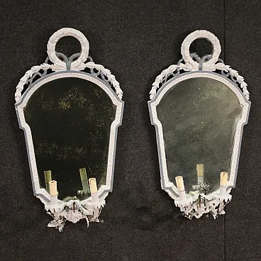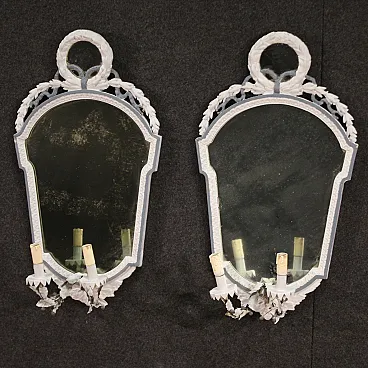 Coppia di specchiere in stile Luigi XVI laccate in bianco, '900