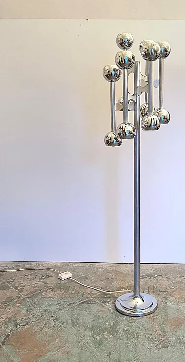 Lampada da terra Space Age In acciaio cromato, anni '70