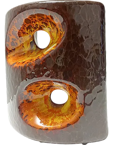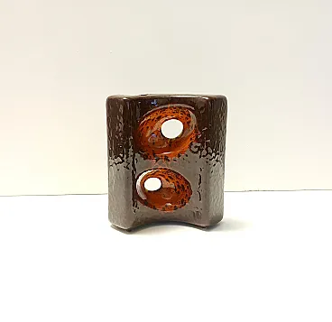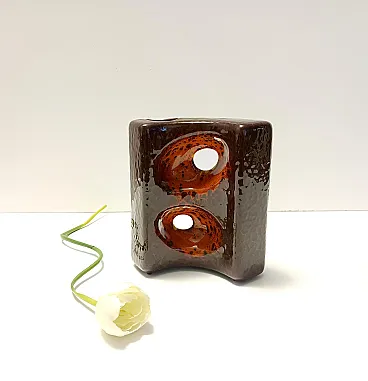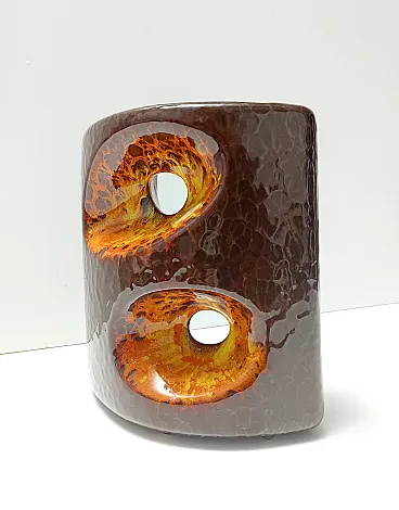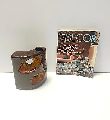 Vaso di Giovanni Bertoncello in ceramica marrone e arancione, anni '70