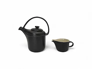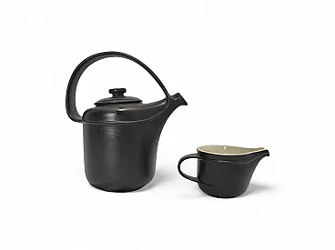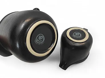 Teiera e lattiera in ceramica nera di F. Bucci, anni '70