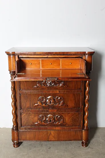 Comò toscano 3 cassetti con ribalta Luigi Filippo, '800