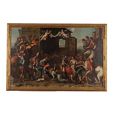La tela è stata restaurata (piccola toppa al retro) e rimontata su telaio alla metà del '900, nonchè collocata in cornice dello stesso periodo.